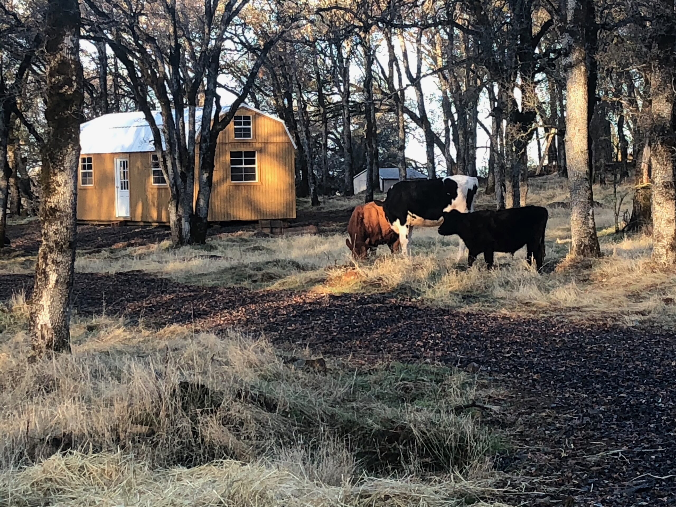 Fortunately, Mr. Bacon follows alfalfa anywhere, so long as a vehicle isn’t involved. He followed his farmer up the driveway and his new friend trailed right along behind him. It took some serious convincing from their owners, but the two eventually made it through the gate and onto the pasture. Apparently, cows need friends, too, so we all arranged for Mr. Bacon to join his new friend and another steer on a neighbor’s plot for the next few months. Have you ever seen a wily cow wrangled down the road by half a dozen riders on horseback? It’s quite a sight and very effective. The three of them will work on trimming up the pasture and ours can get a break to regenerate before spring. Most of the time, we can see the three cows from our window; all of the fences are in tact; and, midday they can be found lounging around in the sun.